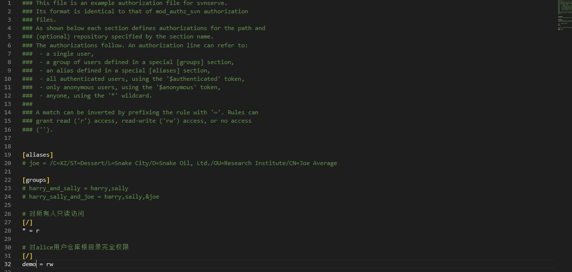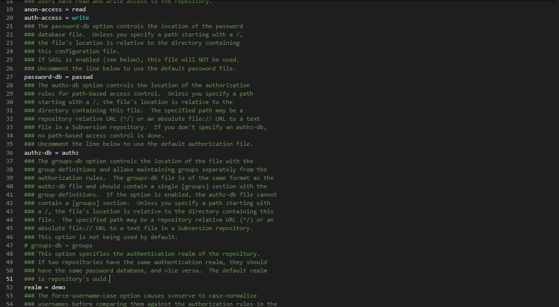 sudo vim svnserve.conf