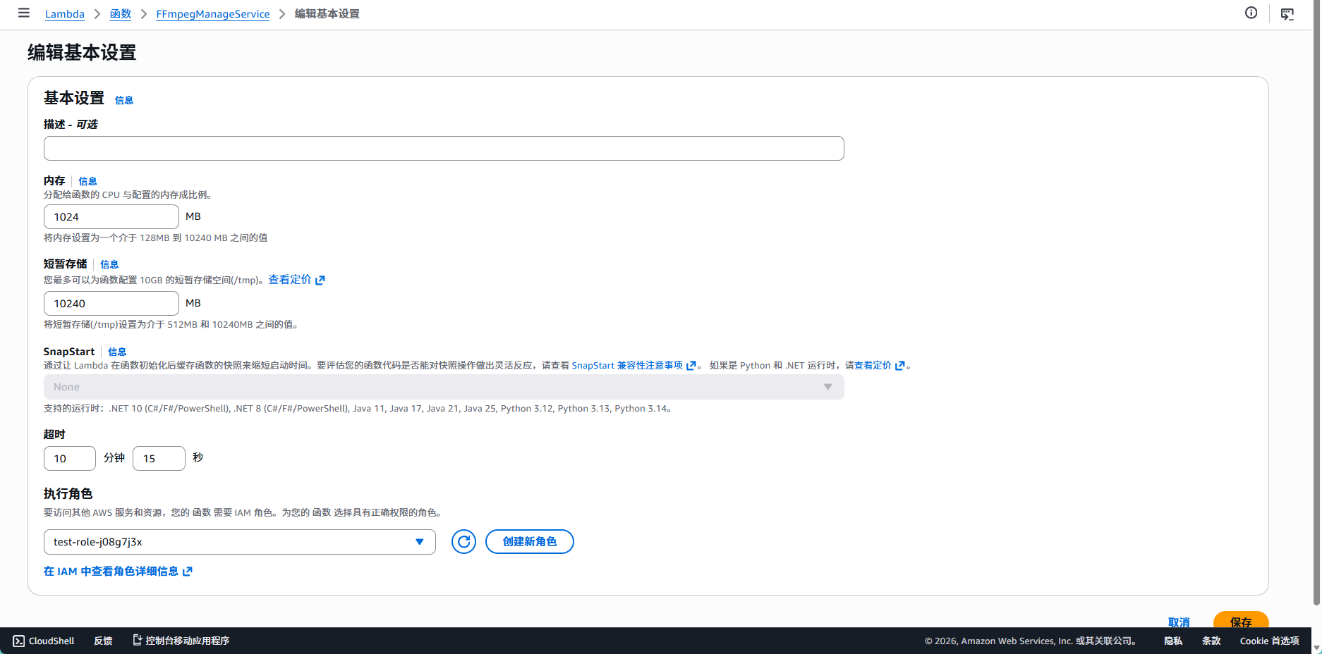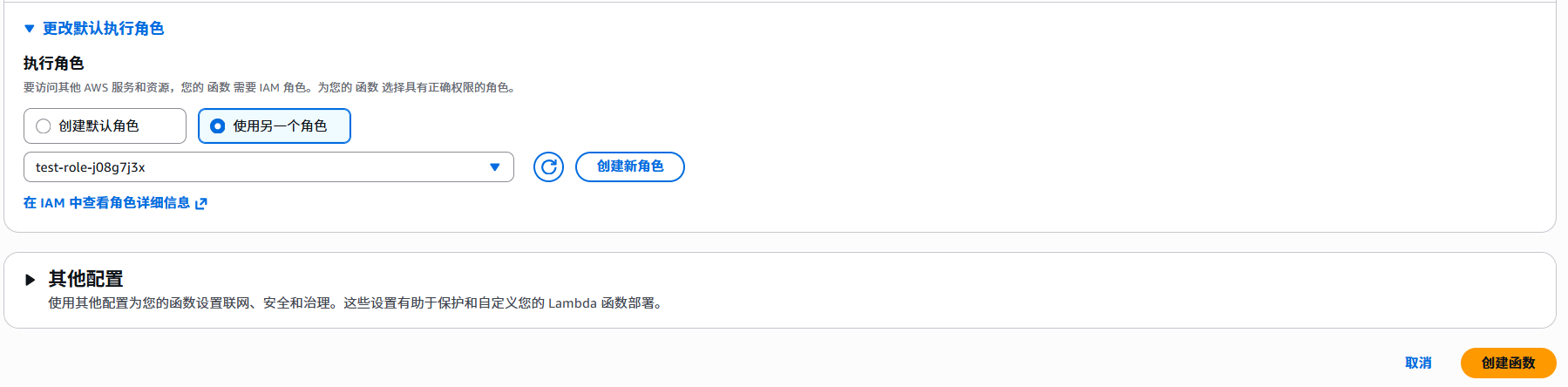 - 选择运行角色,需要Lambda 和 S3 权限