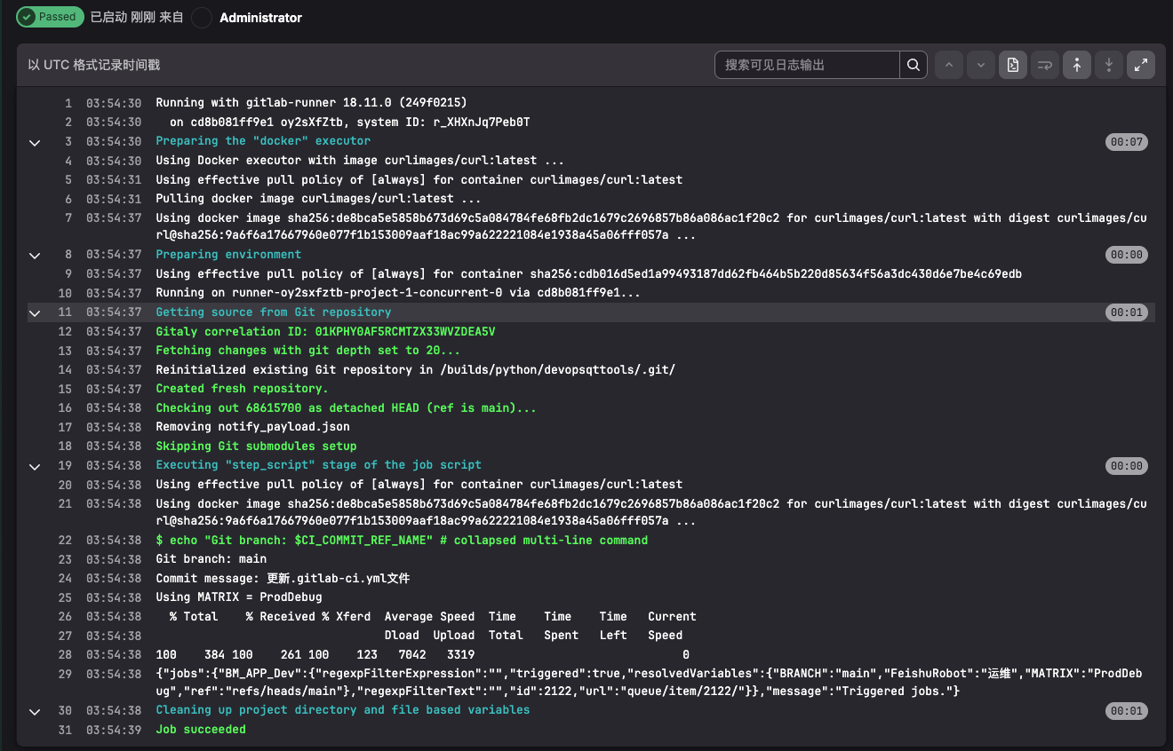 - 当提交/合并代码,Runner运行器会自动获取相关参数提交给Jenkins任务